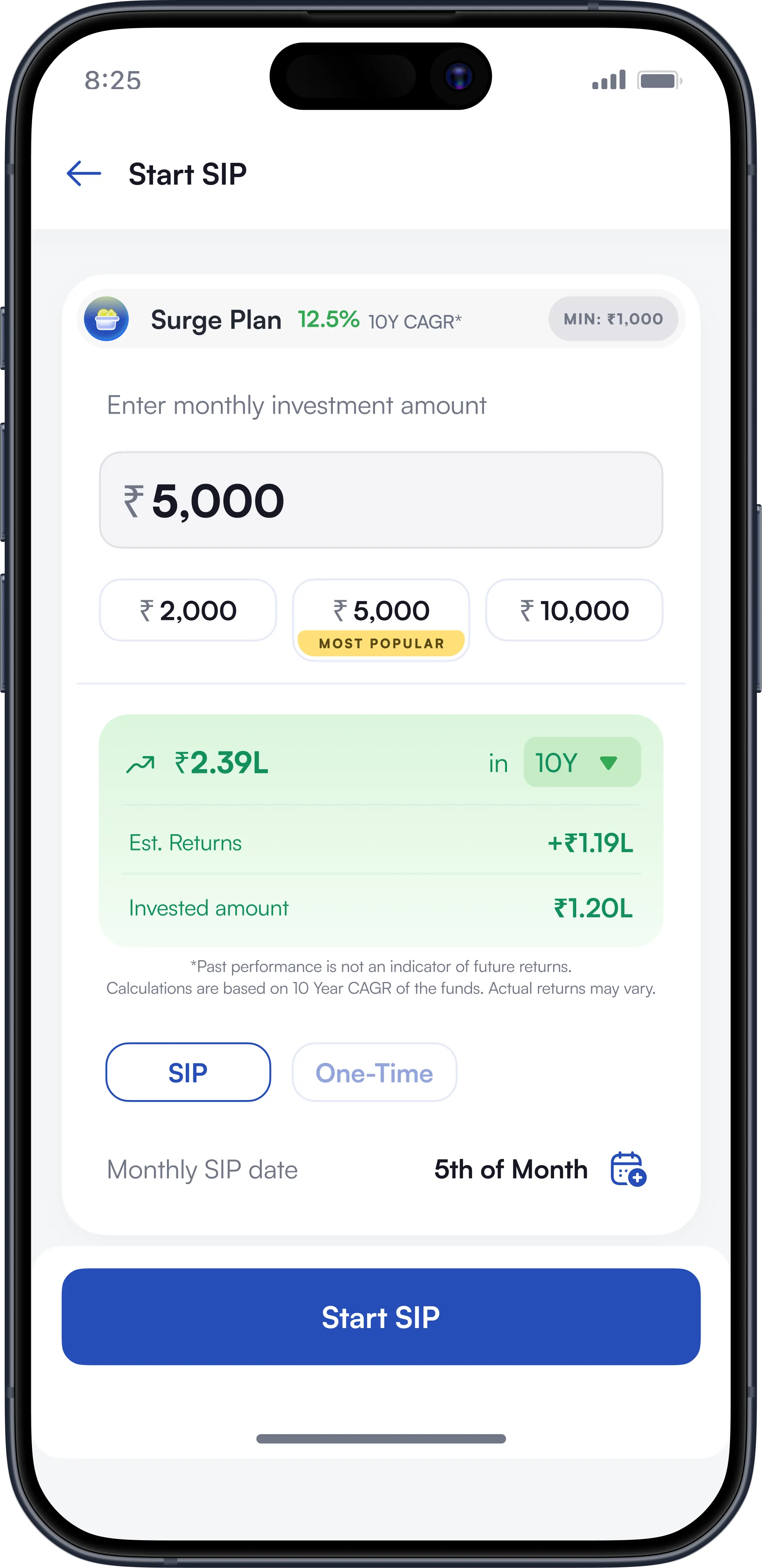 The investment plans use regular mutual funds with a small built-in fee. We receive a part of it from the AMC, and it’s already adjusted in the fund’s returns, so you won’t see any extra charges.